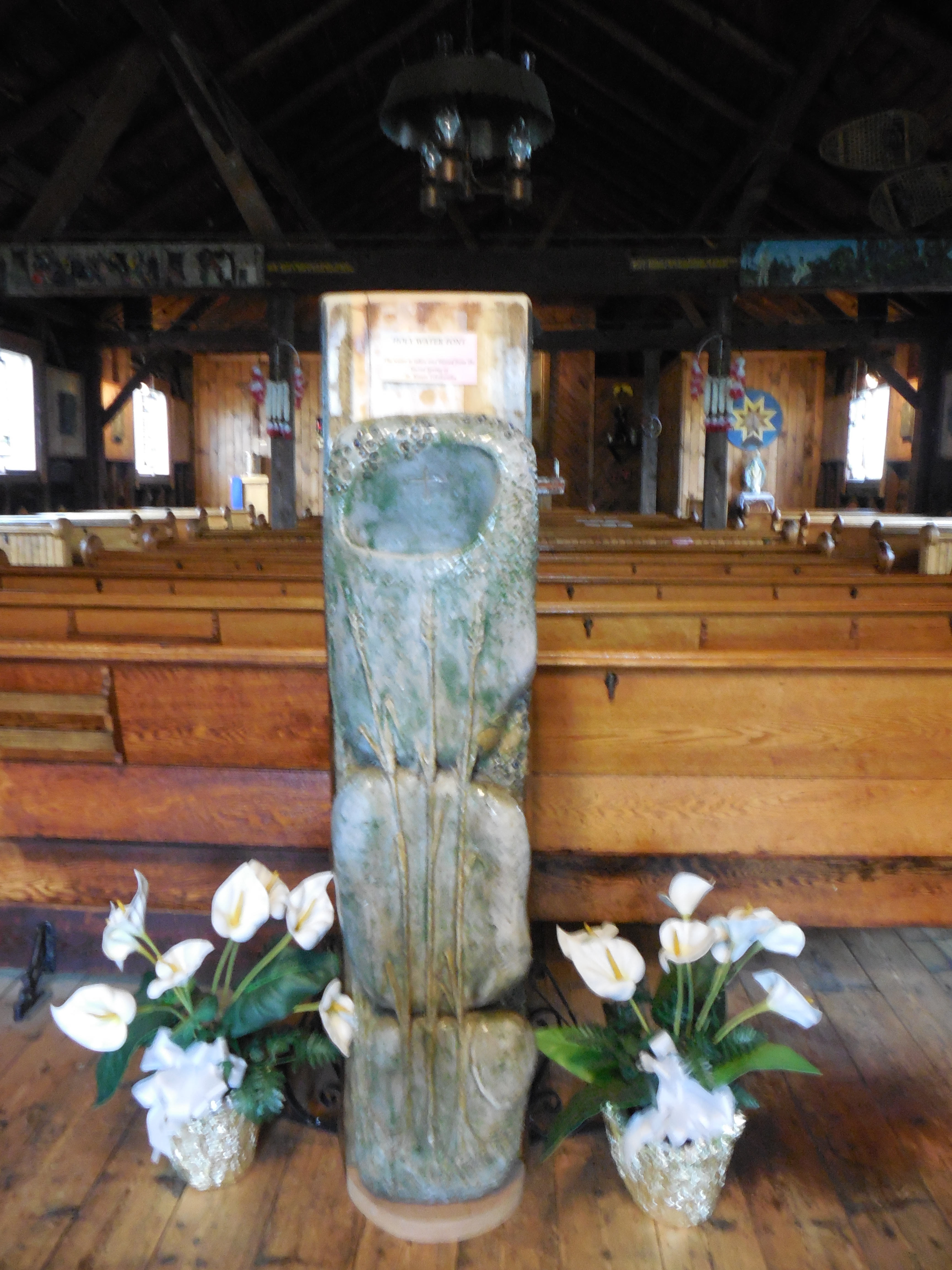 I wandered through the museum first and then upstairs to St. Peter’s Chapel, which is a commemoration to the chapel that Kateri was baptized in. The nearby spring that was used to baptize her (and other converts at that time) still flows. Visitors claim healings and cures after drawing from the holy spring and praying for intercession by St. Kateri.