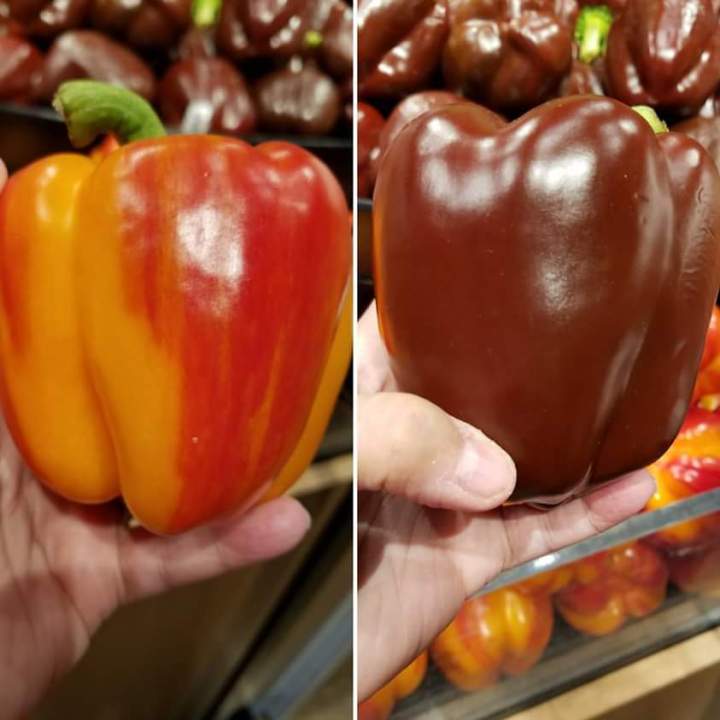 I found these two very different peppers at my local supermarket. I’d never seen these colors before, and of course, had to capture them, and instagram them. The one on the left is a striped Holland, and the one on the right is a brown pepper. They may become part of this summer’s tastings if the kids are adventurous. (c)2017