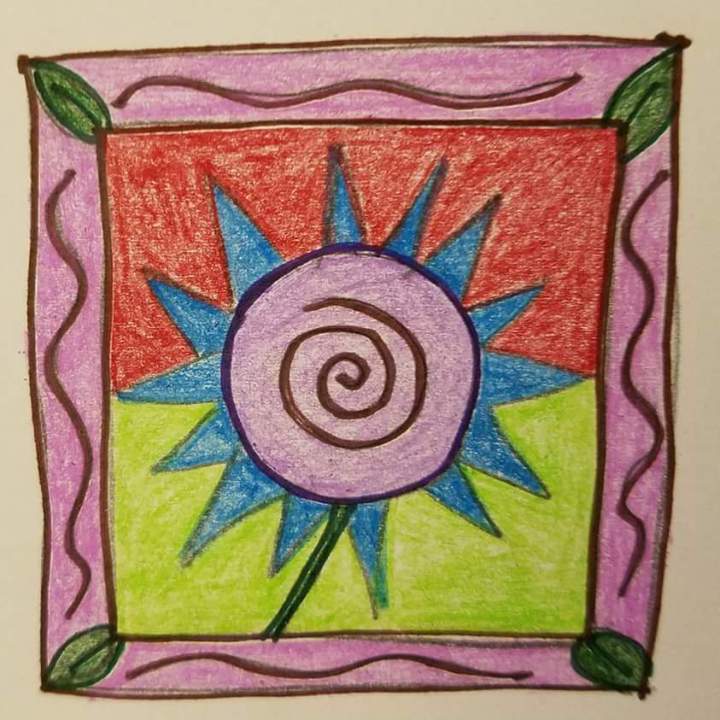 Squares. Exploring colors and shapes with colored pencils. This was after watching Moana, so that was definitely an inspiration for this particular square. (c)2017