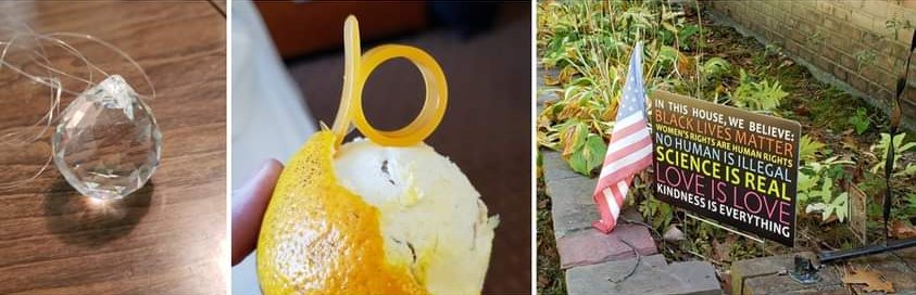 My artifact came from one of our neighbors in the Facebook group. The family bought several prisms online and put them at the end of their driveway in a bucket with a rainbow flag. They posted on the Facebook that they were to be taken whenever folks walked by on their neighborhood romps, but of course, to please take only one per family. They went quick! We were lucky to be able to get one on her second round. When it’s held in the sunlight, it makes rainbow reflections on the walls, windows, and other surfaces. Just looking at the clear glass teardrop shape makes me smile and think of how lucky we are to be in the place that we live. Also, rainbows are hope and promises of better times.
