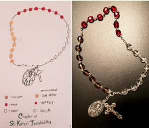 Since I was going to visit her shrine in Quebec, I wanted to have her chaplet to pray with while I was there. I wasn’t able to acquire it until after so I drew one and used that for my prayer. Here is a photo of both of them: