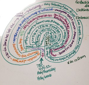Lent did not seem to rush by or to trickle; it went along just right as Goldilocks would say. For me, I think part of it was keeping the labyrinth journal throughout Lent. It forced me (in a good way) to look at my day, both before it began and then to examine how it went later on and keep track of my activities. I mostly stuck to spiritual activities, but some secular ones seeped in, especially when I spent quality time with my family or if I completed writing assignments. Those things got me up in such a positive way, I couldn’t help but meditate on them and incorporate them into my spiritual journey for Lent. I enjoyed switching the colors between journaling, and I enjoyed recognizing close moments with G-d in the micro-narration as well as in the moment.