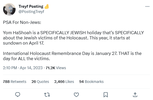 Yom Hashoah is specific to commemorating the Jewish people who perished in the Holocaust.