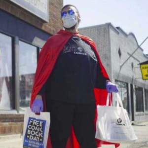During the covid pandemic, I’m sure he was worried about business, but he pulled together a curbside delivery after one week or so, and we tried to get there each week. We didn’t necessarily need the comics, but supporting JC was something that we didn’t even have to discuss. He met us (and other customers) curbside in his Earthworld t-shirt, Superman cape, and of course, his mask and gloves. A real super-hero.