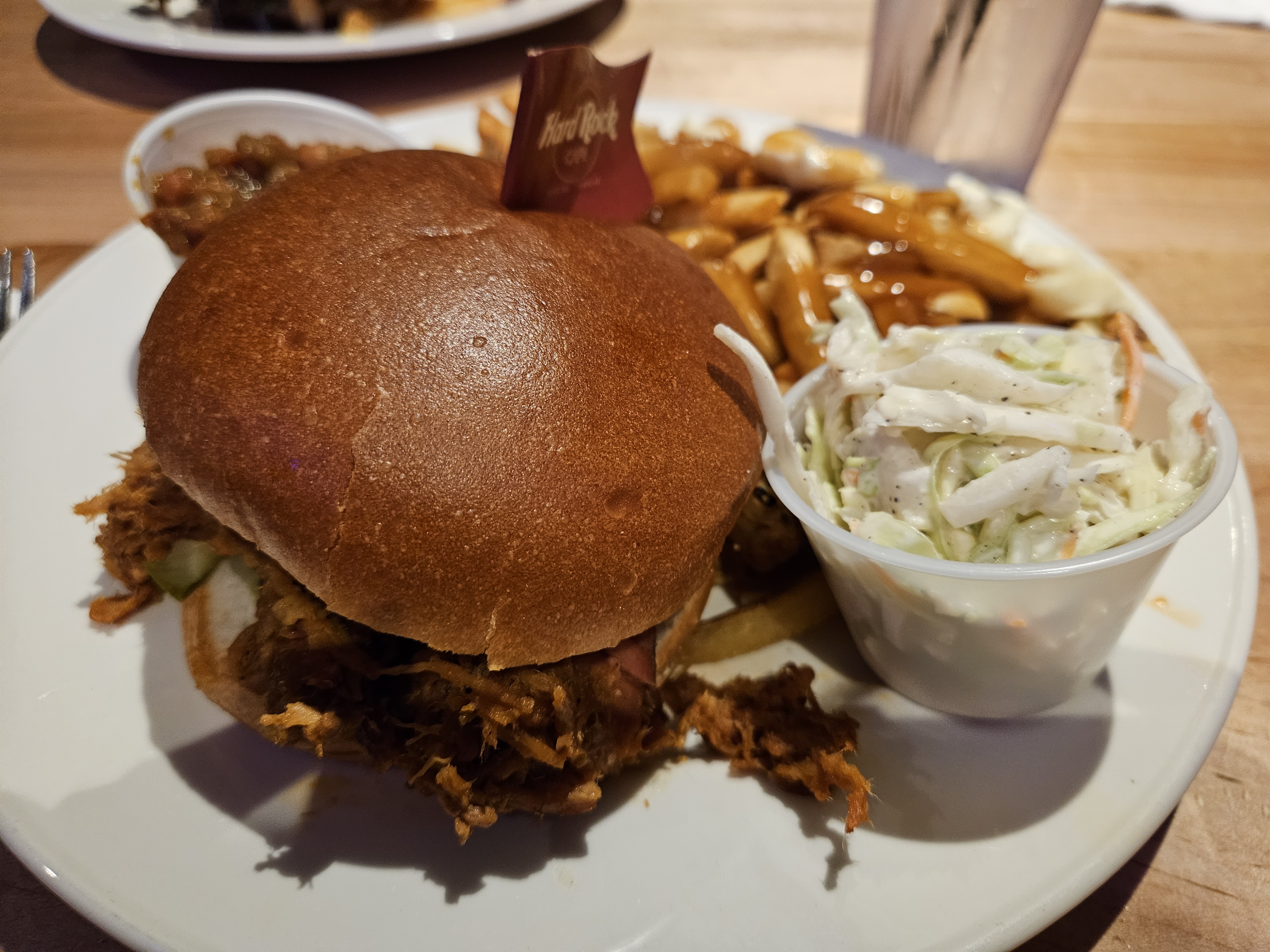Pulled Pork sandwich with cole slaw, fries with gravy.
