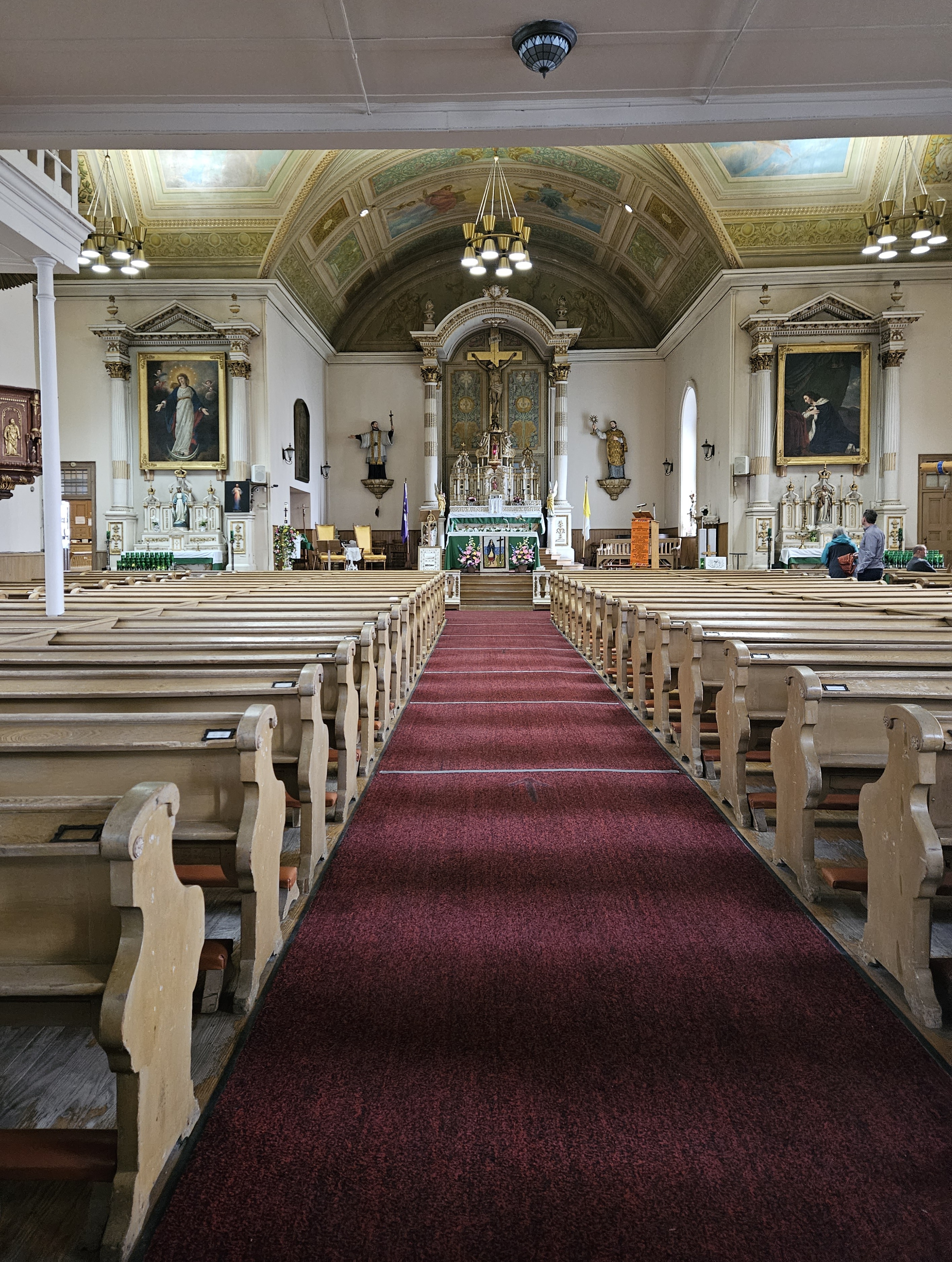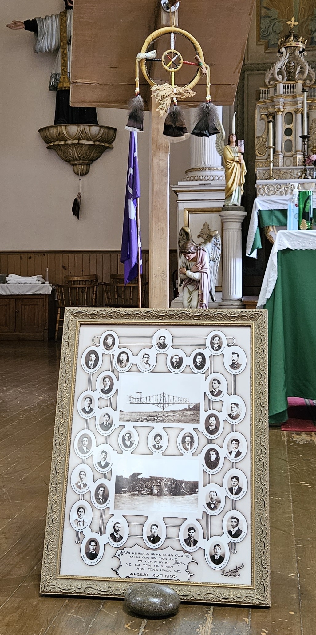 I’ve been to Kahnawake three times. The first was during that covid time when we could only explore the outside. And then this past summer, I was able to visit Kahnawake twice. The first time we visited, we knew the church would be closed on the only day we had available, but we did attend a tour of the village through the Kahnawake Tourism Center. We received a very detailed and informational tour about the area, the Mohawks past and present, St. Kateri, and a bit about the mission church. On our next visit at the end of August, we were able to not only visit and see the inside of the church, we were also able to attend mass, see the original and earliest painting of Kateri by Father Claude Chauchetiere (one of the Jesuit missionaries at the time) as well as her relic that was removed from the vault for us to observe and venerate (if we chose to).