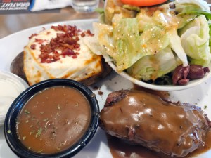 Bavette Steak with pepper sauce with Monte Carlo potato with bacon and mozarella and a house salad. ❤ Barbie’s in Saint Constant. (c)2025