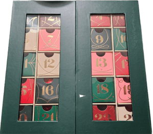 I thought for the first Friday Food of the new year, I’d share two amusing ones. Just below is an Advent Calendar I got just after Advent started. It was half price on clearance. It really is a cute box.