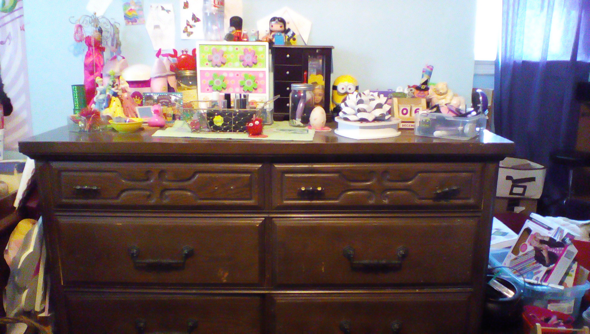 StandardThis is my daughter’s dresser. I don’t know how her clothes fit in here. With the closet and the pjs under her bed, sweaters in the basket next to the dresser, she manages to get it all in. Mostly. This was my dresser when I was a baby, but what I remember this dresser most for was hat it sat in the living room of our NYC apartment (and later of our suburban house). In our two bedroom apartment it was placed against one long wall directly across from our green patterned sofa. During Passover, we’d walk along it on our way to leave a glass of wine for Elijah on the radiator.