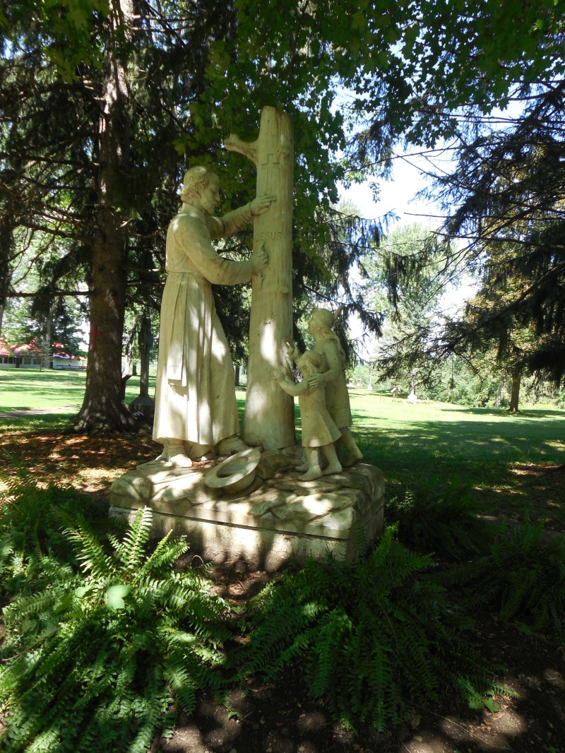 There is also the ravine where Rene Goupil’s body was found. In visiting there, I found it very spiritual and a place of holiness. The way to the ravine is quite steep. On the way there are several statues and grottos to pray at as well as signs that tell the story of the Martyrs.