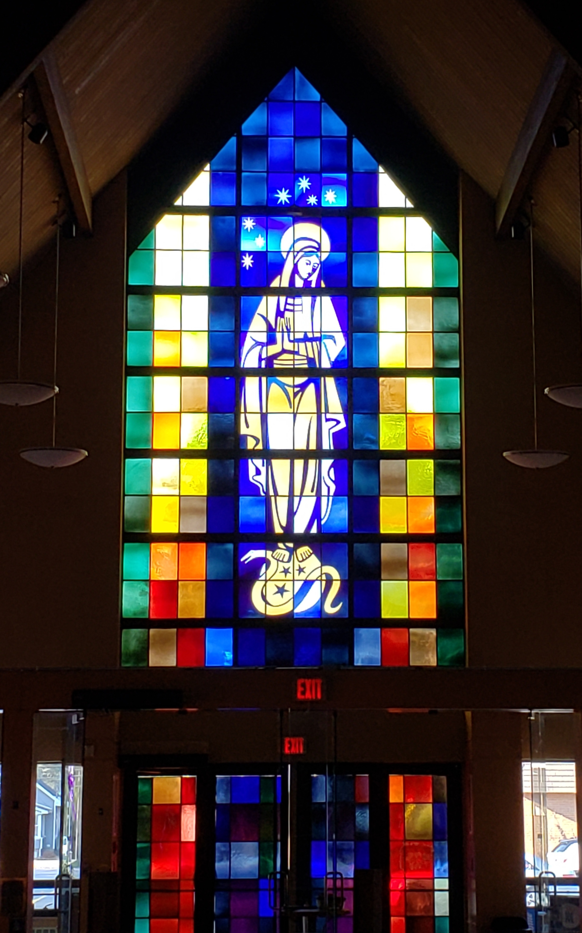 Stained Glass Window. Immaculate Conception, Mary. (c)2020