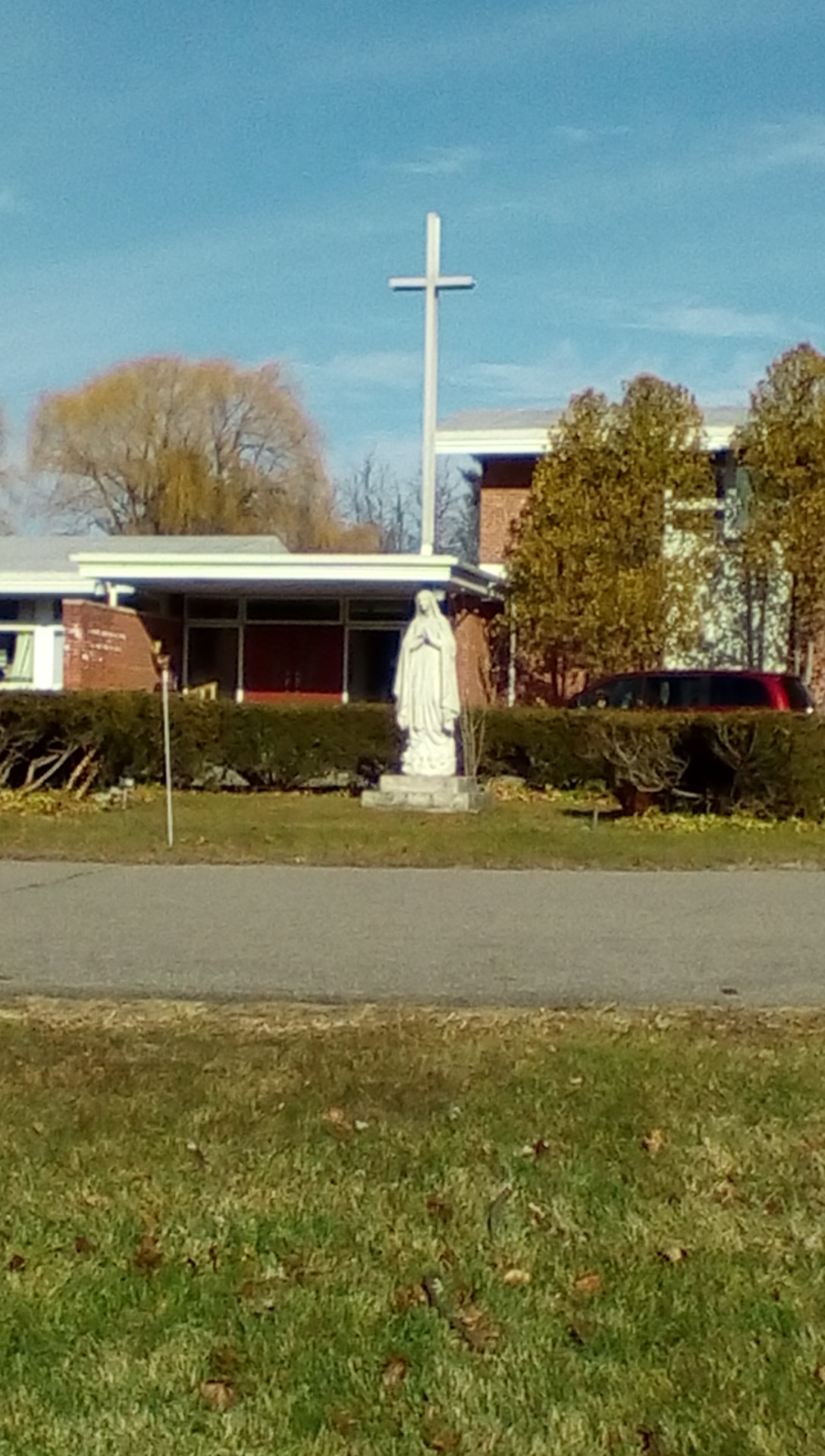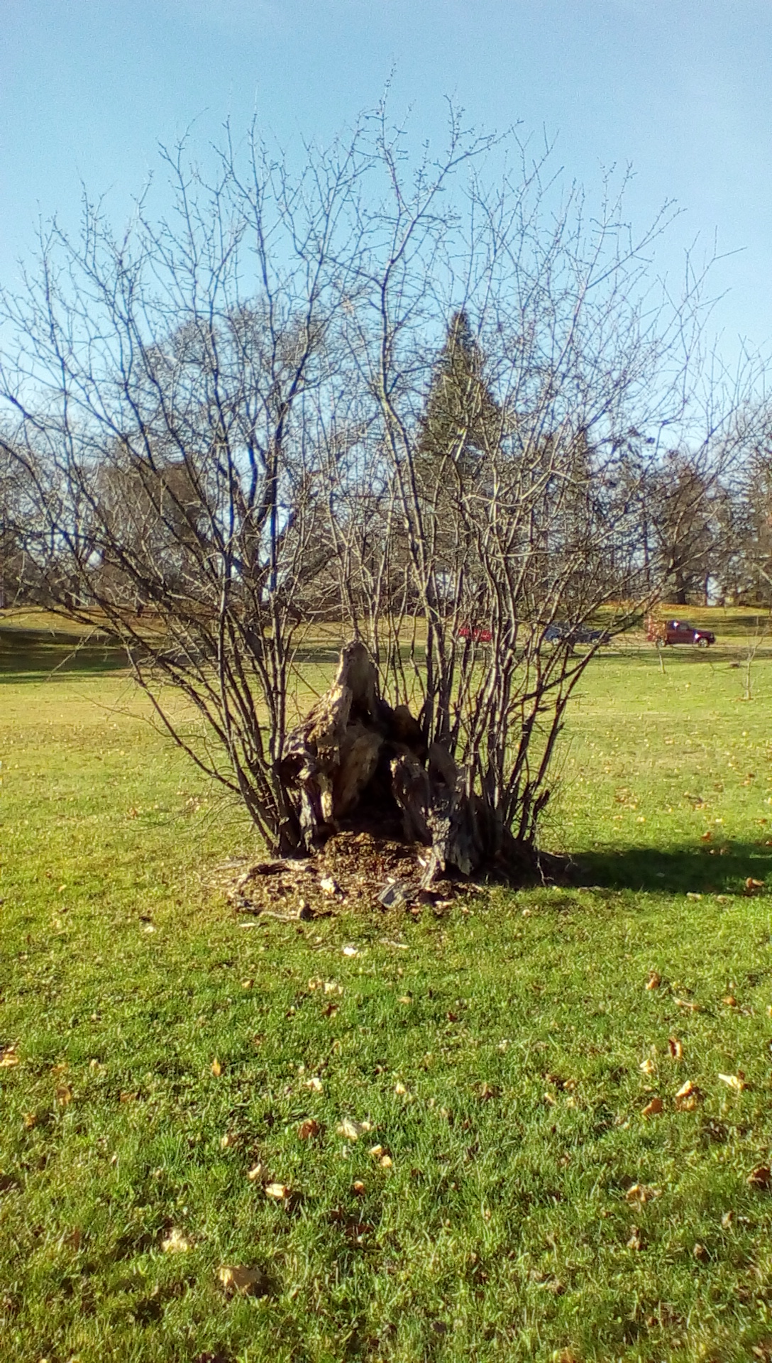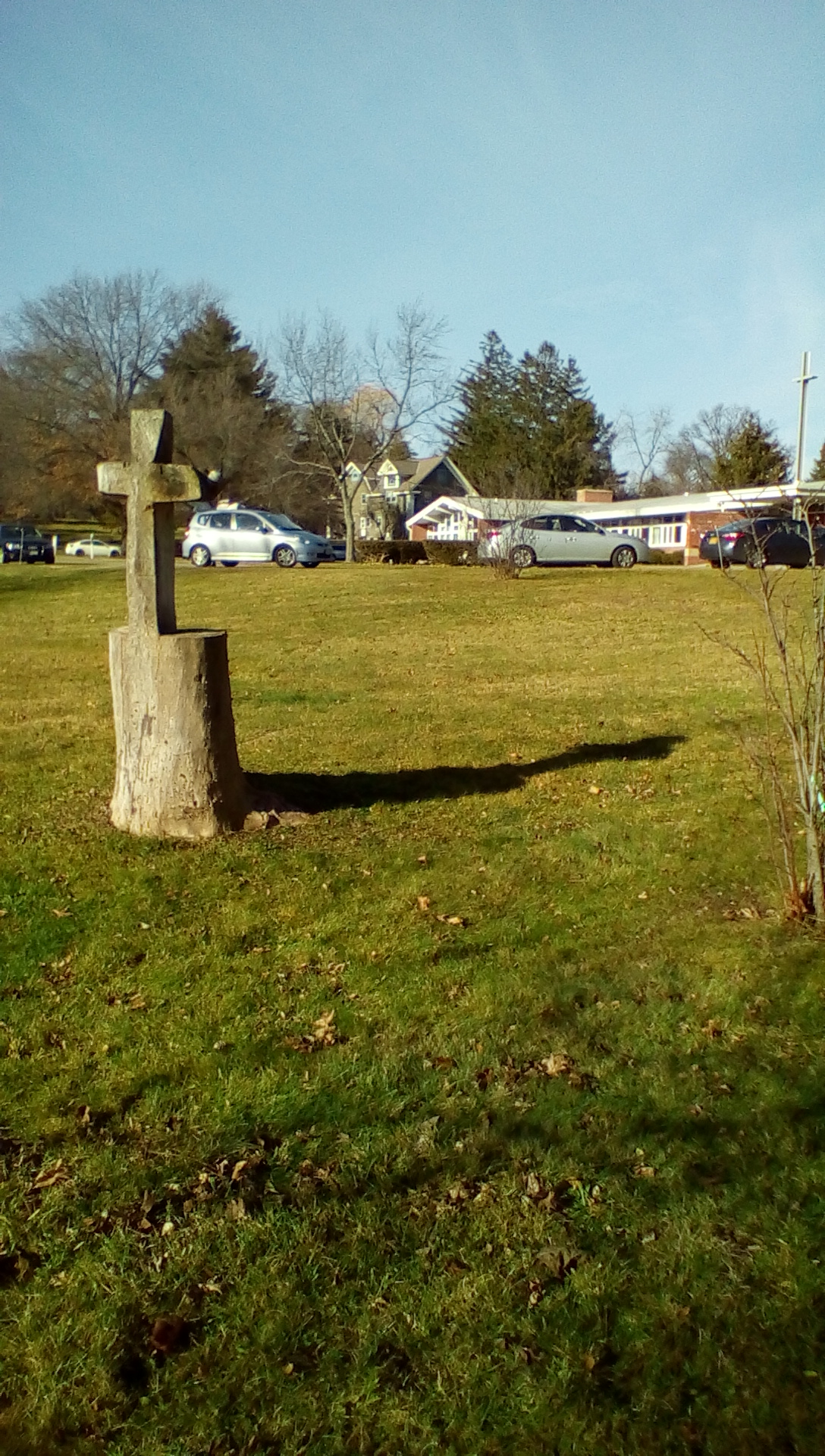 The sun was bright, the sky that perfect blue. I had intended to wander down to this cross that was carved out of the tree stump, but they’ve removed all of the benches. I’m assuming that is to get the grounds ready for winter.
