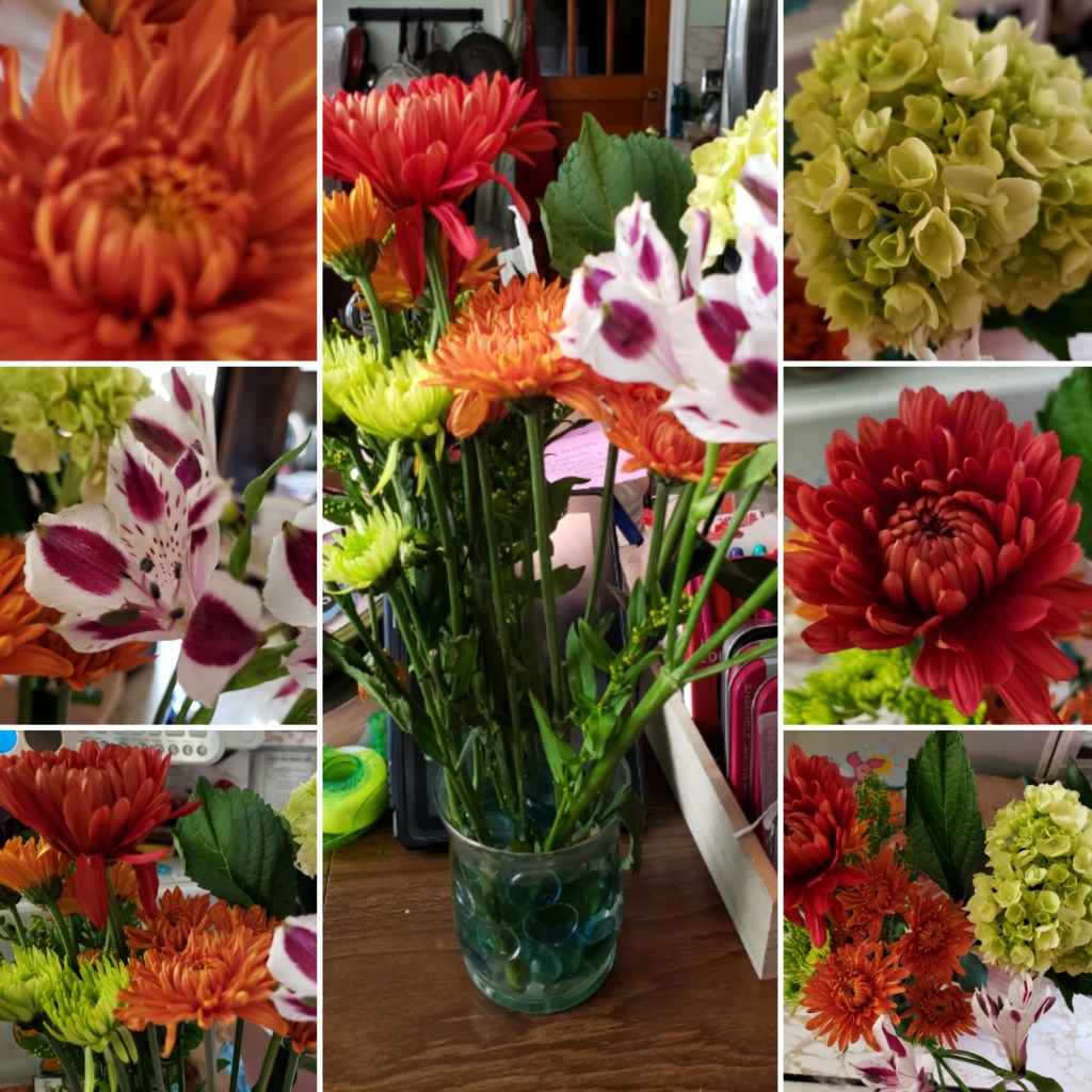 The picture below is a reminder that not everything is expected. About once a week, my family goes to The Fresh Market chain. They have what they call a “little big meal”. It feeds a family of four for $25 and usually comes with five or six components. The most recent one was a chicken roll up dinner and surprisingly one of the items was a bouquet of flowers. I thought it strange since they are not edible, but instead they fed something that was missing from me recently. The brought on a quietness, a contemplative series of moments as I trimmed the stems and arranged them in my vase. I smelled each one, adding water and a bit of the powdered food daily. We got them Sunday and they are just as strong, just as beautiful as when I brought them home. They are a welcome addition to my work space. I didn’t know I longed for them until I received them.