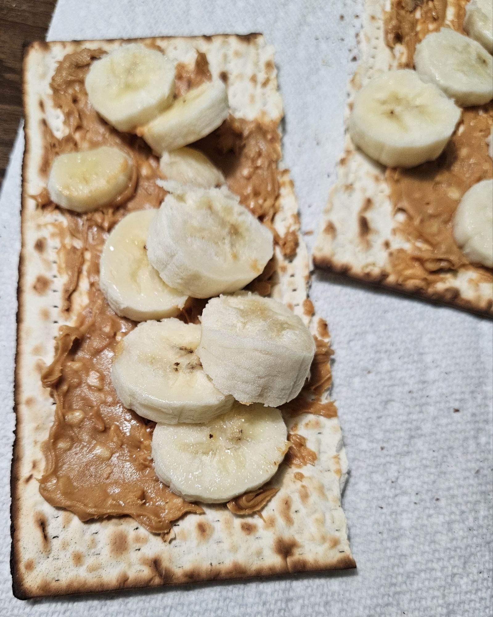 I have had a recent obsession with peanut butter and bananas – any bread including matzo. (Not pictured English muffin.)