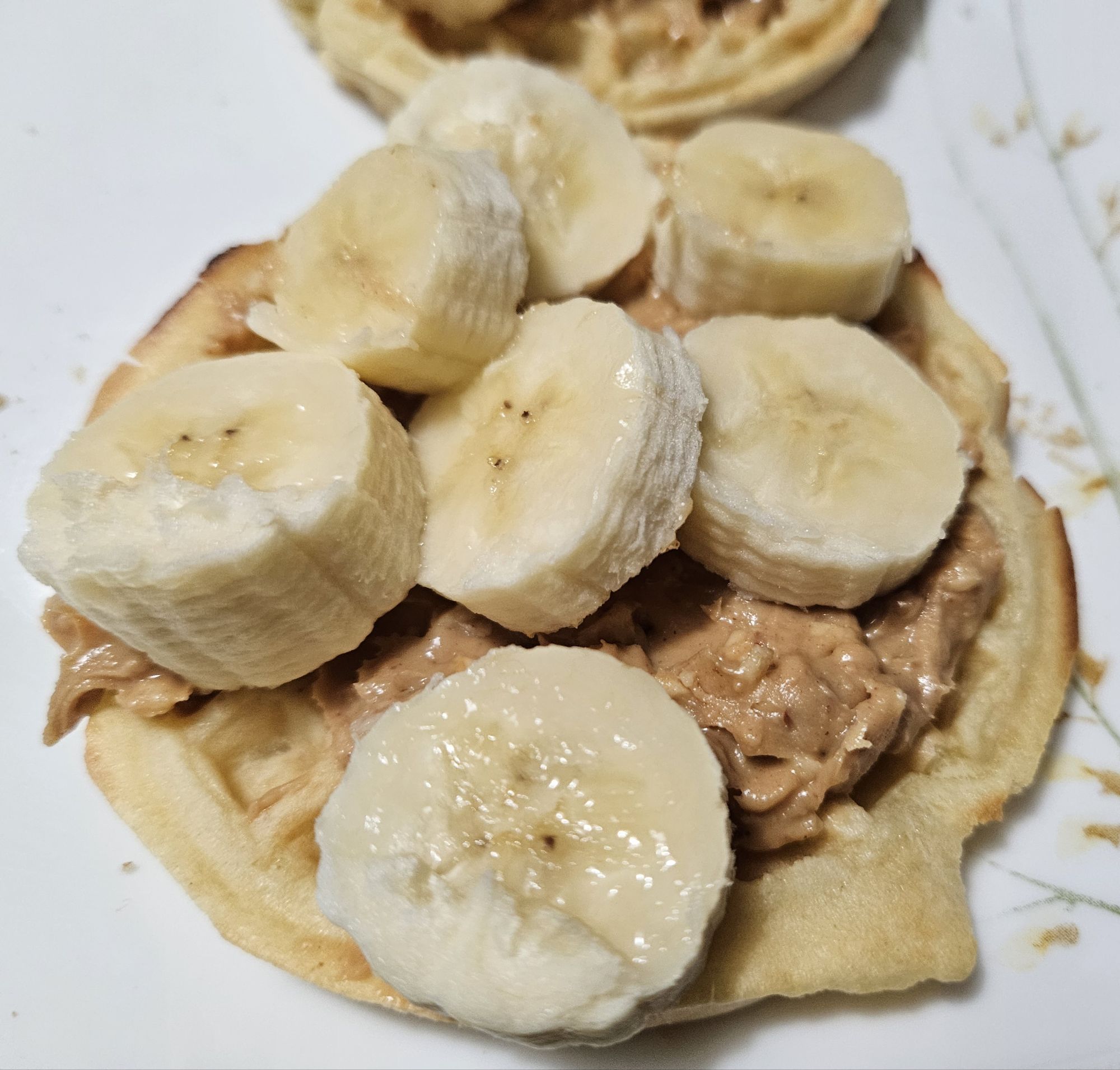Peanut butter and banana on a Waffle. (c)2024Peanut butter and banana on egg bagel. (c)2024Peanut butter and banana on matzo. (c)2024
