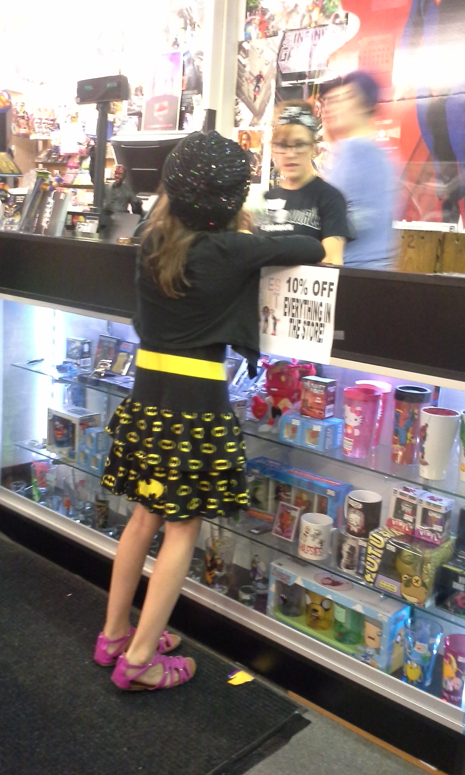 Owning (receiving as gifts) ridiculous amounts of stuff. This is a sonic screwdriver from Doctor Who. This belonged to Nine and Ten. I carry it everywhere. It’s a flashlight, and during blackouts we have this and our Green Lantern power battery to help out.