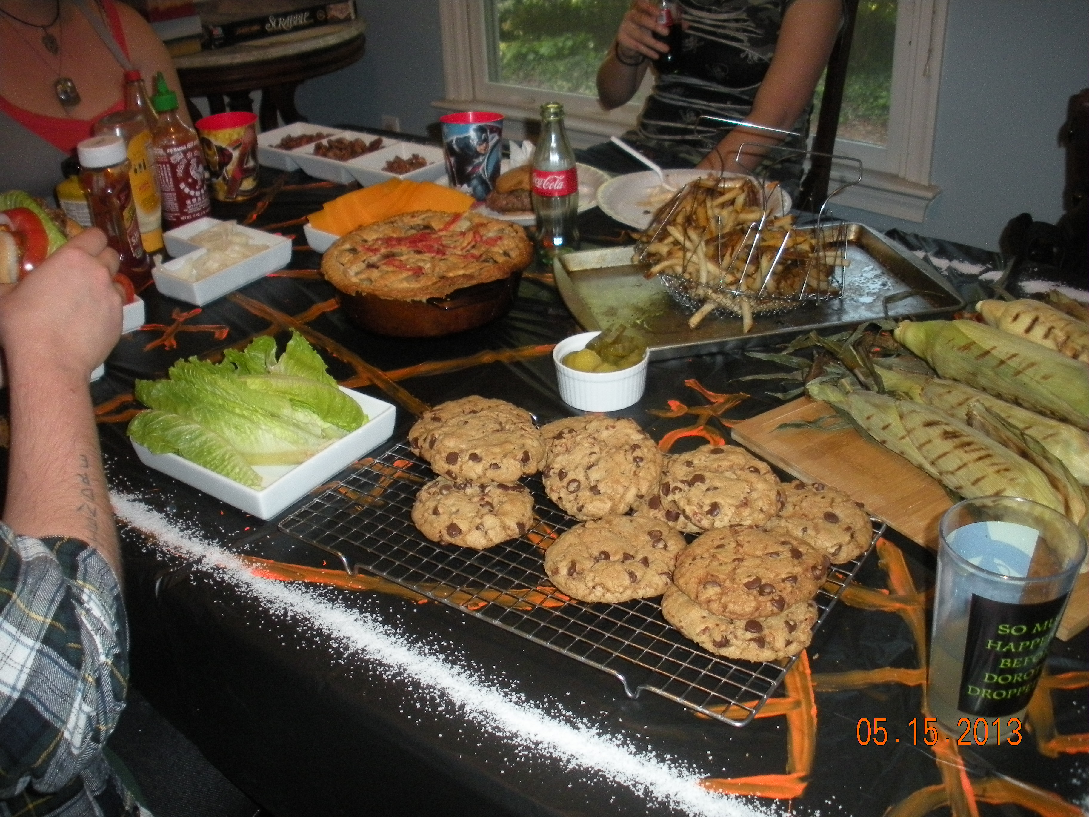 Supernatural, season 8 finale party. All-American food on a Devil’s Trap tablecloth with Classic Rock music of course!