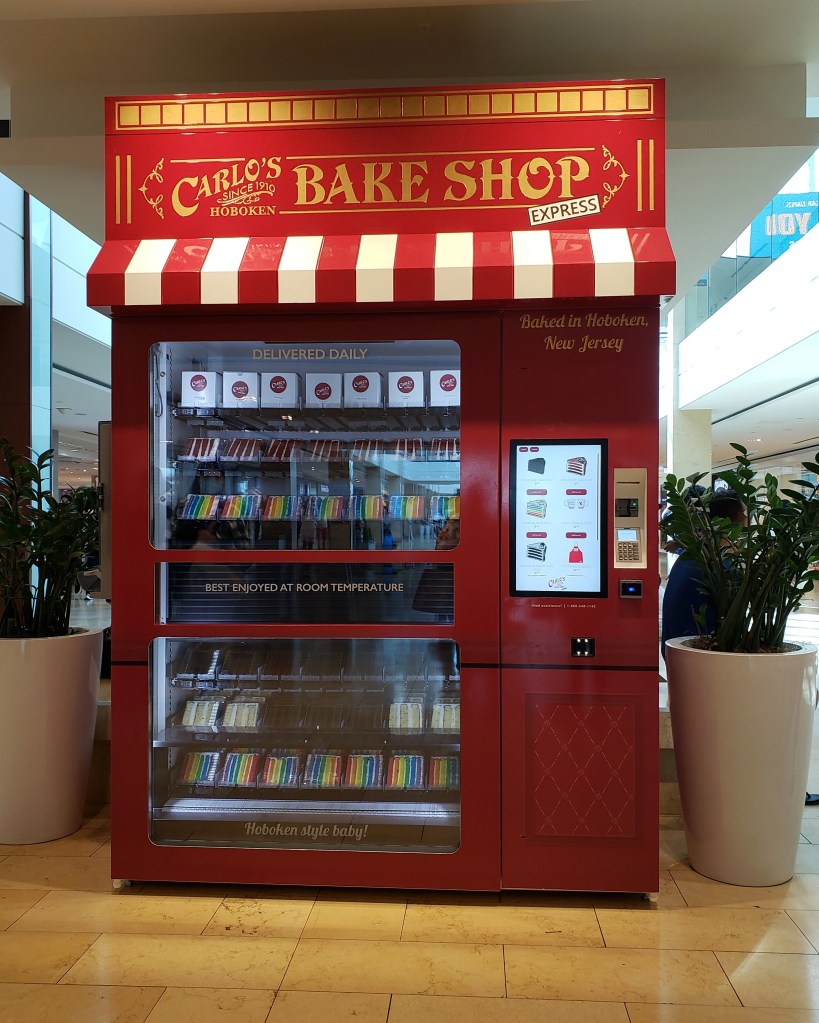 While we were in Canada a couple of years ago, in the mall on the way to the food court, we came across a vending machine that sold and dispensed CAKE! I had never seen anything like it before. I thought it was amazing!