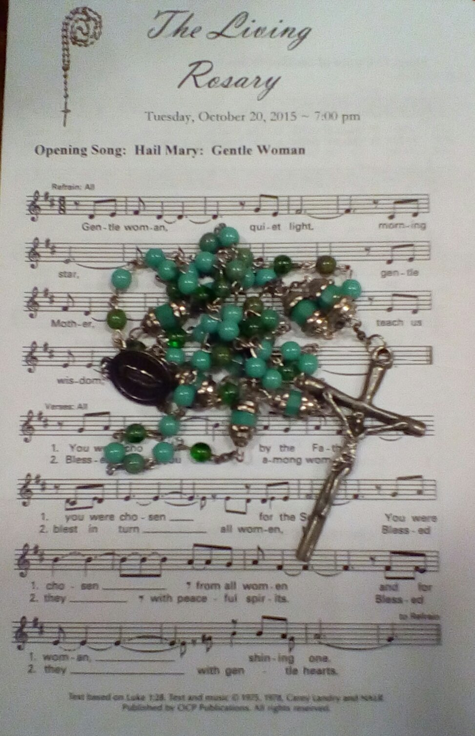 On Tuesday night, my church held a Living Rosary. There is music with our organ and the choir. There is a candlelit procession of all the beads on the rosary. There are prayers, and the benediction of the adoration that’s been in the church all day. It is a wonderful, faith filled, and beautiful tribute to Our Mother, Mary.