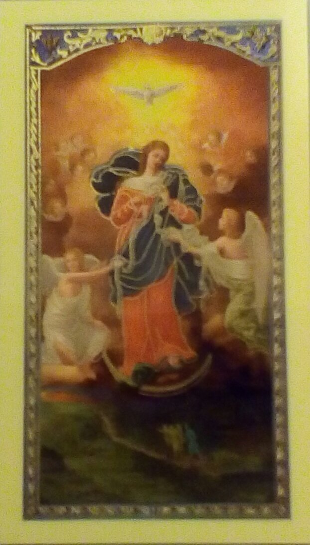 After the candlelit rosary, Father J talked about Mary. He began by mentioning Pope Francis’ devotion to Mary and how it began in Germany when he was a student. I began to smile. I couldn’t help it because I knew this story. This is my favorite devotion to Mary. Pope Francis grew attached to a stained glass and a painting in his church. Before I knew of his devotion, I had already formed my own to Mary, Untier (or Undoer) of Knots. I carry that particular prayer card in my purse daily, which I showed the father after the service.