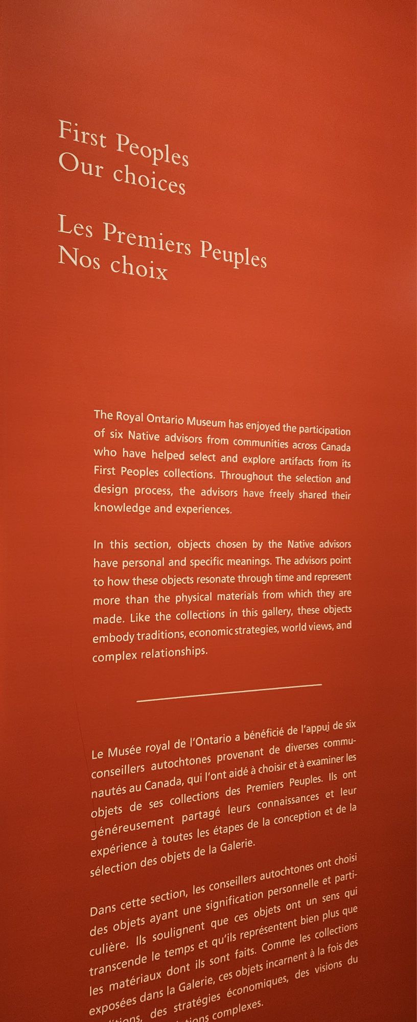 I thought I would share some of the things and signage that I noticed on our recent visits to Canada. The Royal Ontario Museum in Toronto has a large First Nations exhibit. I think it took nearly an hour to get through it and I could have probably stayed longer.