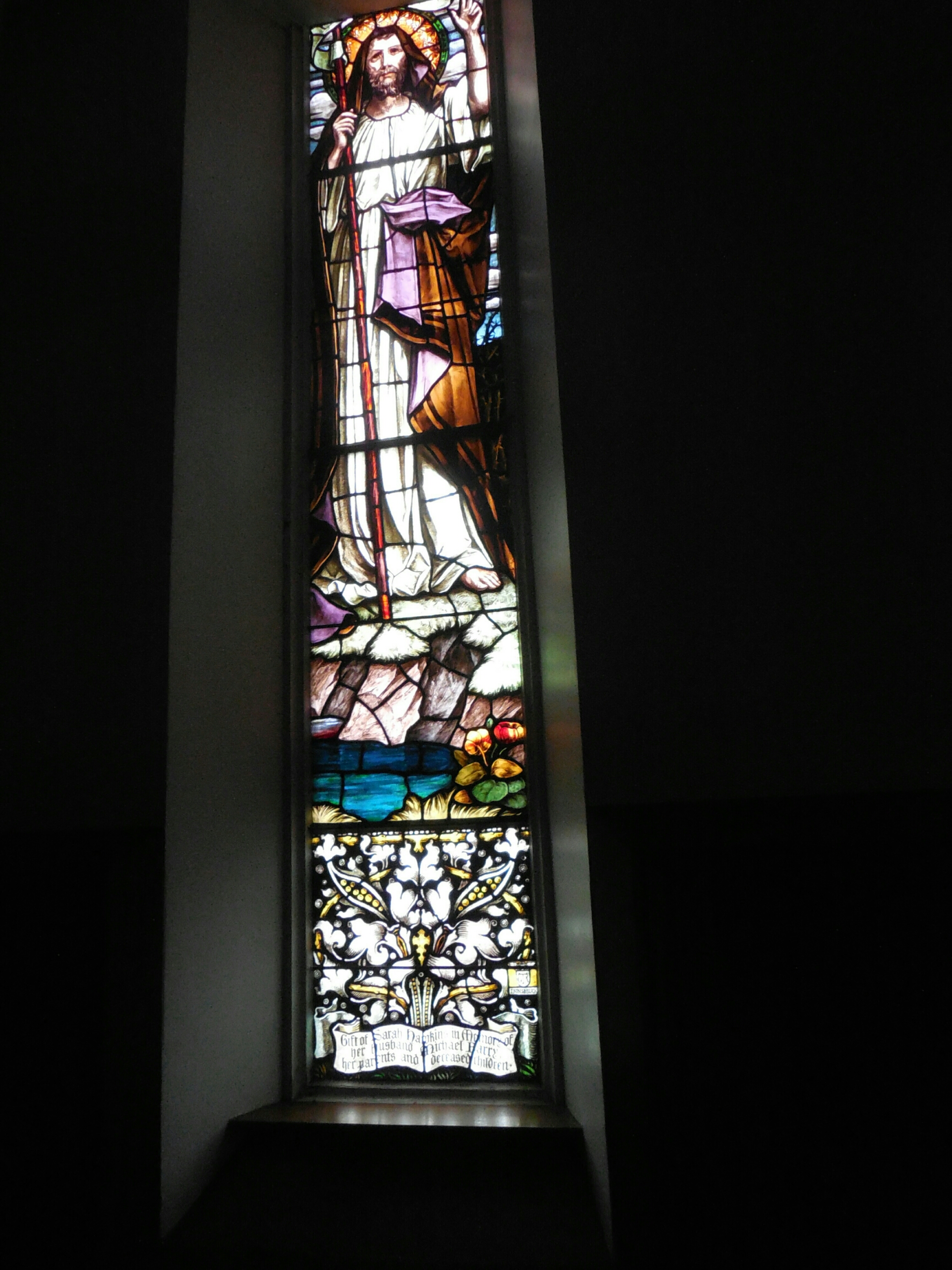 St. Brigid in stained glass from the St. Joseph Catholic Church in Macon, Georgia. Image in the public domain. (c)2019