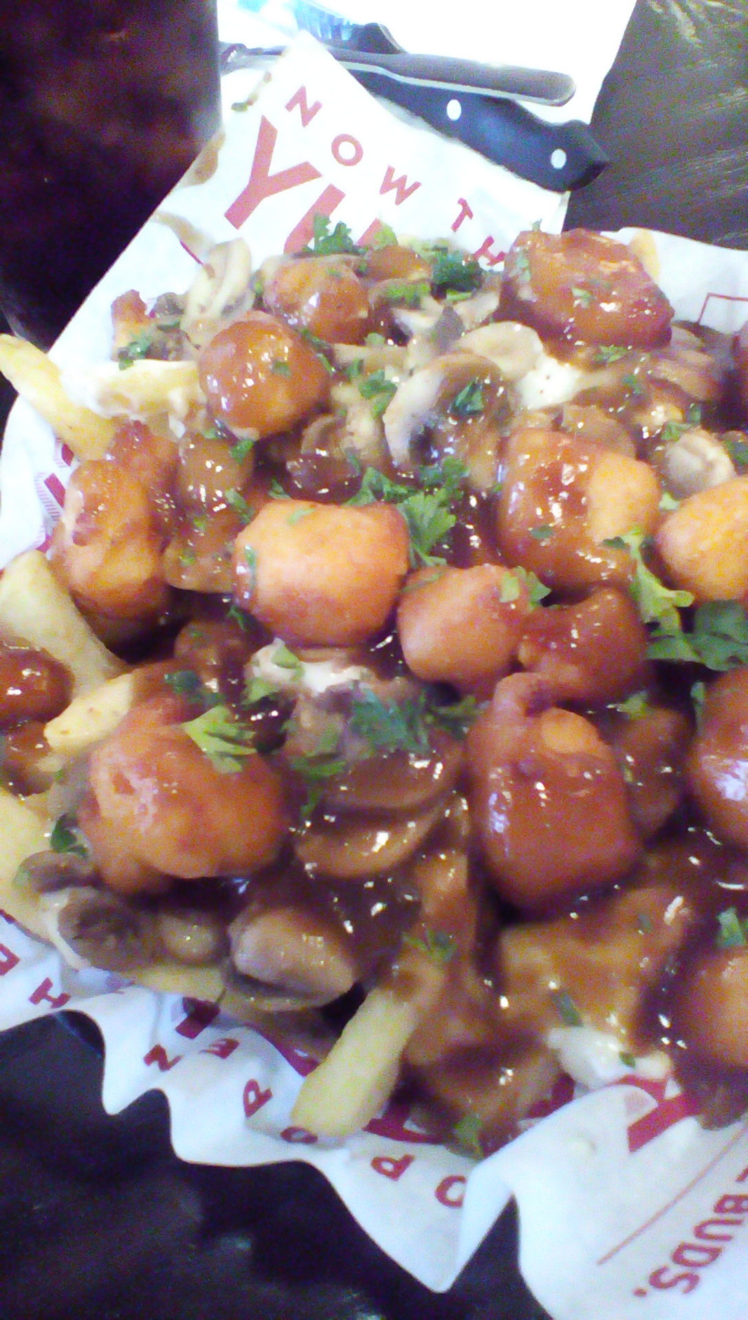 Continue readingNew at Red Robin! At $9, the Great Northern Poutine Fries appetizer is entree size, and includes their steak fries covered with mushrooms, garlic aioli, brown gravy and cheese curds. It was amazing even though I couldn’t eat more than half of it! Red Robin also has the best burgers with something for everyone, and one of the best royalty/loyalty clubs I’ve seen.