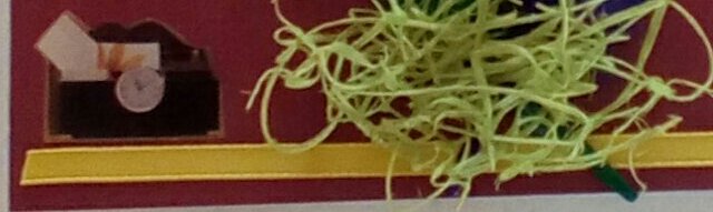10. I don’t think there was a concrete reason for taking the green straw. I hadn’t realized how difficult it would be to glue down, but I wanted it. Maybe it is something of nest building. perhaps it is taking something that is not much of anything and turning it into something of beauty and reflected joy.I don’t know, but I also don’t think the the board would work without it.