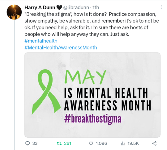 May is Mental Health Awareness Month. I’m not sure if that’s meant to be that we should be aware of the mental health struggles going on for the people around us and to give some space and grace or if it’s also supposed to be for ourselves to recognize our own struggles and be aware and self-aware of our own mental health and the triggers as well as the coping tools we carry with us on a daily basis.