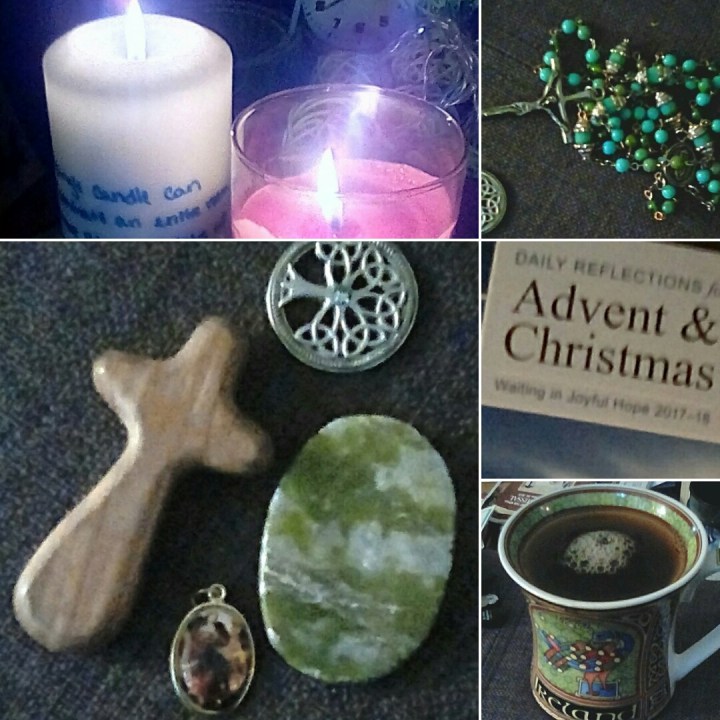Instead of beginning my day with Facebook and Instagram, emails and Twitter as I usually do, instead of bemoaning the state of affairs of this country, perhaps I could pad downstairs, boil some water for a cup of tea, light a candle and read the two minute devotional. When that’s complete, I can read the day’s Scripture readings. Then just sit for a time. Finish up with the rosary.